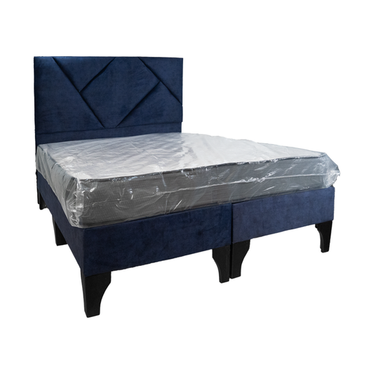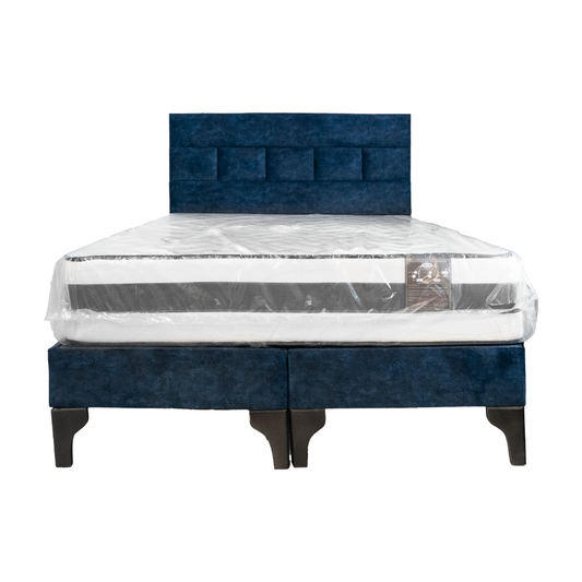 Cama 2 Plazas Azul con Colchón Ortopédico y Respaldo Mixto