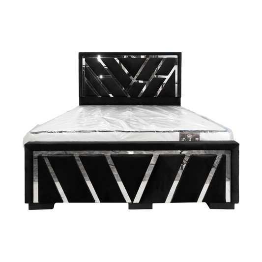 Cama Negra de 2 Plazas con Respaldo de Espejo – Diseño Moderno
